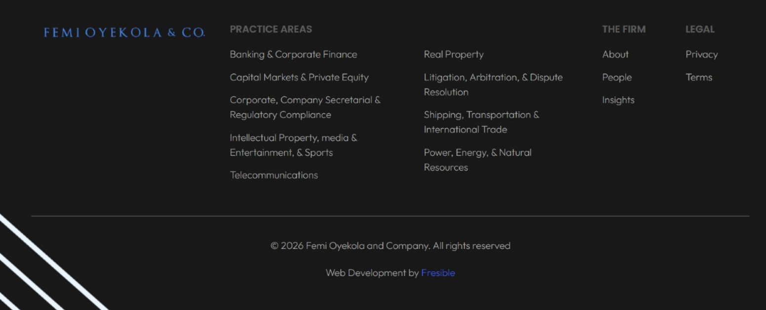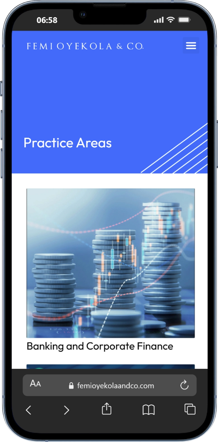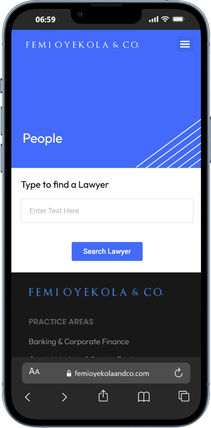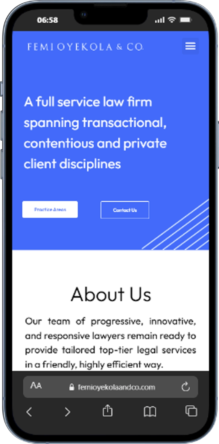 The Femi Oyekola and Co website design project aims to create a professional and user-friendly online platform for the respected law firm, Femi Oyekola and Co. The goal is to establish a strong online presence that reflects the firm’s legal expertise and commitment to client service while providing seamless navigation and comprehensive information to potential clients. We prioritized several key areas in our process, including: