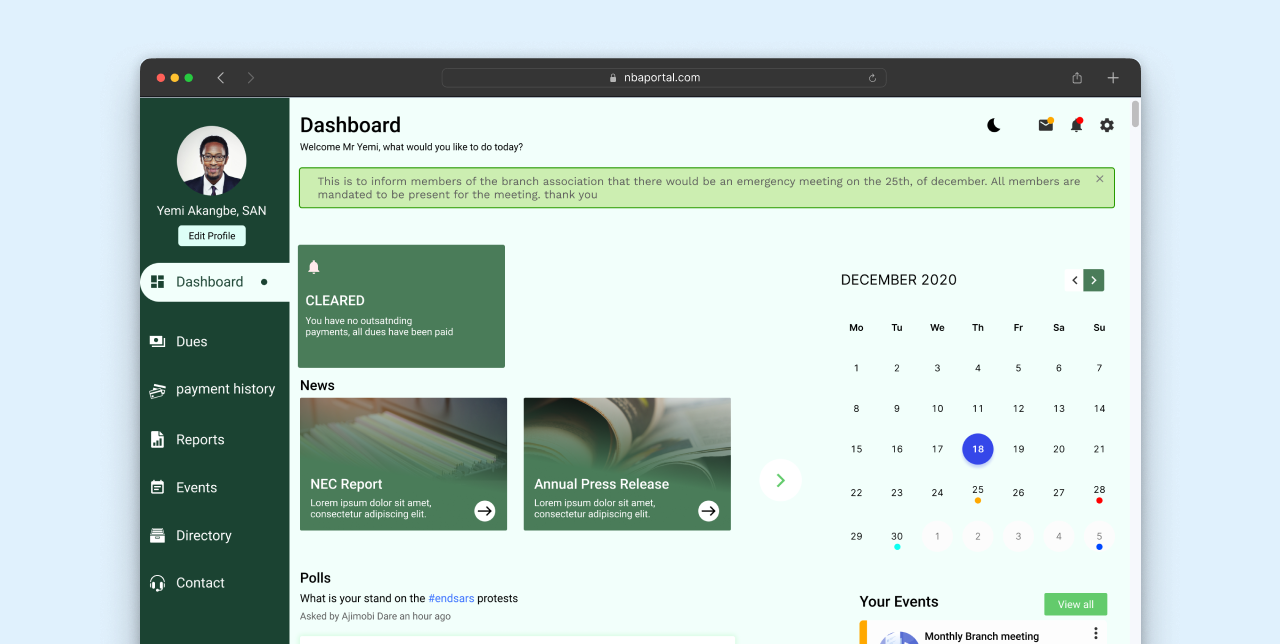 The Nigerian Bar Association (NBA) is a professional organization representing lawyers in Nigeria. As the legal landscape evolves and the demands of members change, the NBA recognized the need for a modern and efficient online portal to streamline various processes for its members. The goal of this case study is to outline the process of redesigning the NBA’s online portal to allow lawyers to manage their information, pay dues, apply for stamps and seals, and access additional services seamlessly.