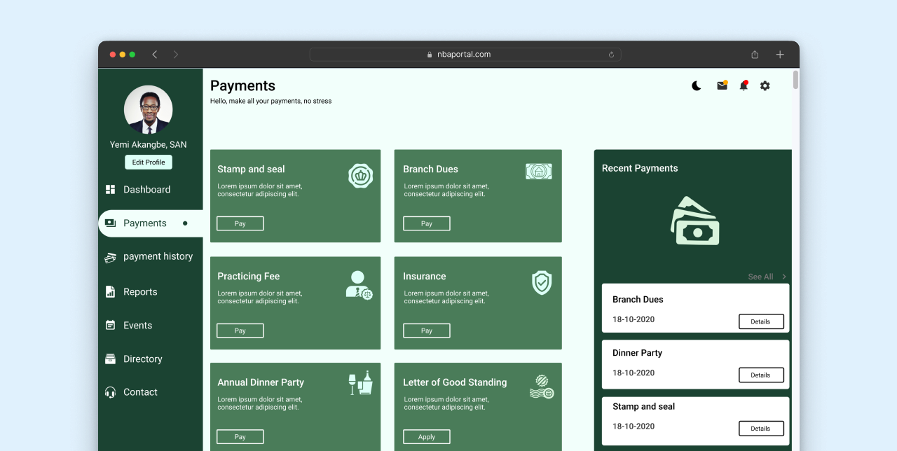 The design of the Nigerian Bar Association’s online portal proved to be a successful endeavor. By focusing on user needs and incorporating essential features, the portal became a central hub for lawyers to manage their information, pay dues, apply for stamps and seals, and access various services with ease. The NBA’s commitment to providing an efficient and user-friendly platform demonstrated its dedication to enhancing member experience and meeting the evolving demands of the legal profession in Nigeria.
